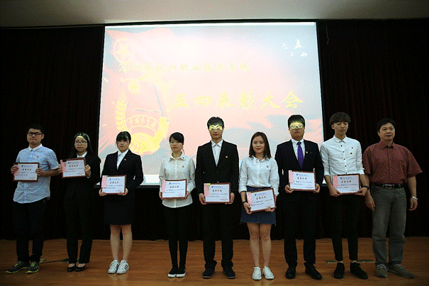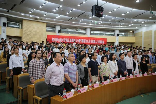 5月4日下午,在这个属于所有青年人的节日里,2016年杭州职业技术学院五四表彰大会暨“喜迎G20,优礼杭职人”主题讲座在行政楼二楼报告厅隆重召开。校党委委员金徐伟,党政办、学工部负责人及各二级学院党总支书记,2015年度各类先进集体和优秀个人以及来自各二级学院的四百多名学生代表出席大会