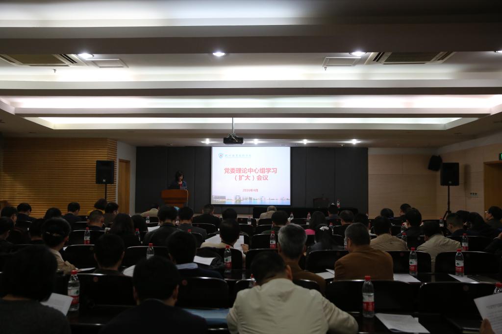 4月26日下午,我校在行政楼第三会议室召开党委理论中心组(扩大)集体学习活动。党政领导班子成员安蓉泉、赵一文、张洪宪、陈泉淼、陈加明、金徐伟,全体处级以上领导干部、专业负责人参加会议。会议由党委副书记赵一文主持。