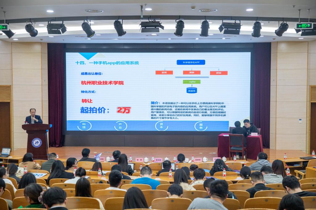 11月15日下午,2023浙江科技成果竞价(拍卖)会杭州钱塘首选地杭州职业技术学院专场暨第四届钱塘拍活动在学校行政楼二楼报告厅隆重举行。本次拍卖会由杭职院与杭州市科技局联合主办,浙知交(杭州)知识产权运营有限公司、浙江理工大学(杭州)技术转移有限公式承办,杭州钱塘科学城管理办公室、钱塘区经济信息化和科学技术局、杭州医药港管理办公室协办。