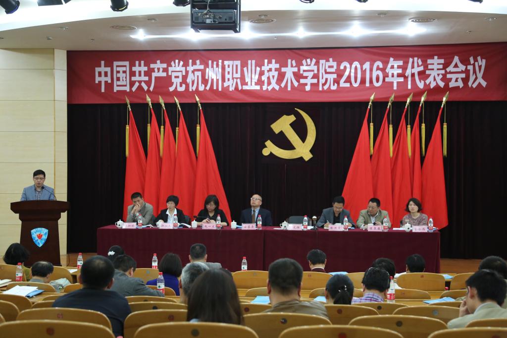4月20日,中国共产党杭州职业技术学院2016年代表会议在行政楼二楼报告厅召开,我校党委领导班子成员、全体在校党代表、非代表的党员处级干部参加。会议由党委副书记赵一文主持。