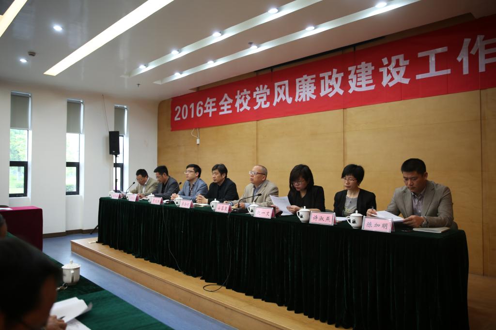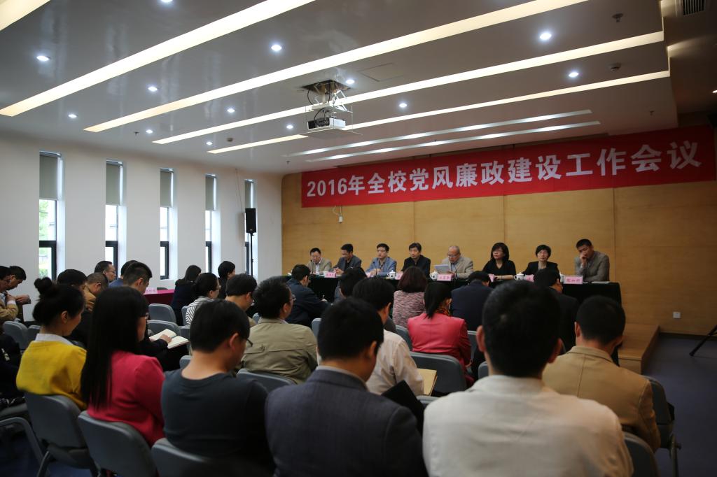校纪委书记陈泉淼对2015年学校党风廉政建设工作进行了回顾总结,同时结合实际,从贯彻全面从严治党要求,加强党的纪律建设;层层传导压力,推进“两个责任”落实;深化教育提醒,筑牢思想根基;坚持问题导向,深化作风建设;强化监督检查,切实规范权力运行;加强队伍建设,提升履职能力水平等六个方面全面部署了2016年全校党风廉政建设的主要工作任务。