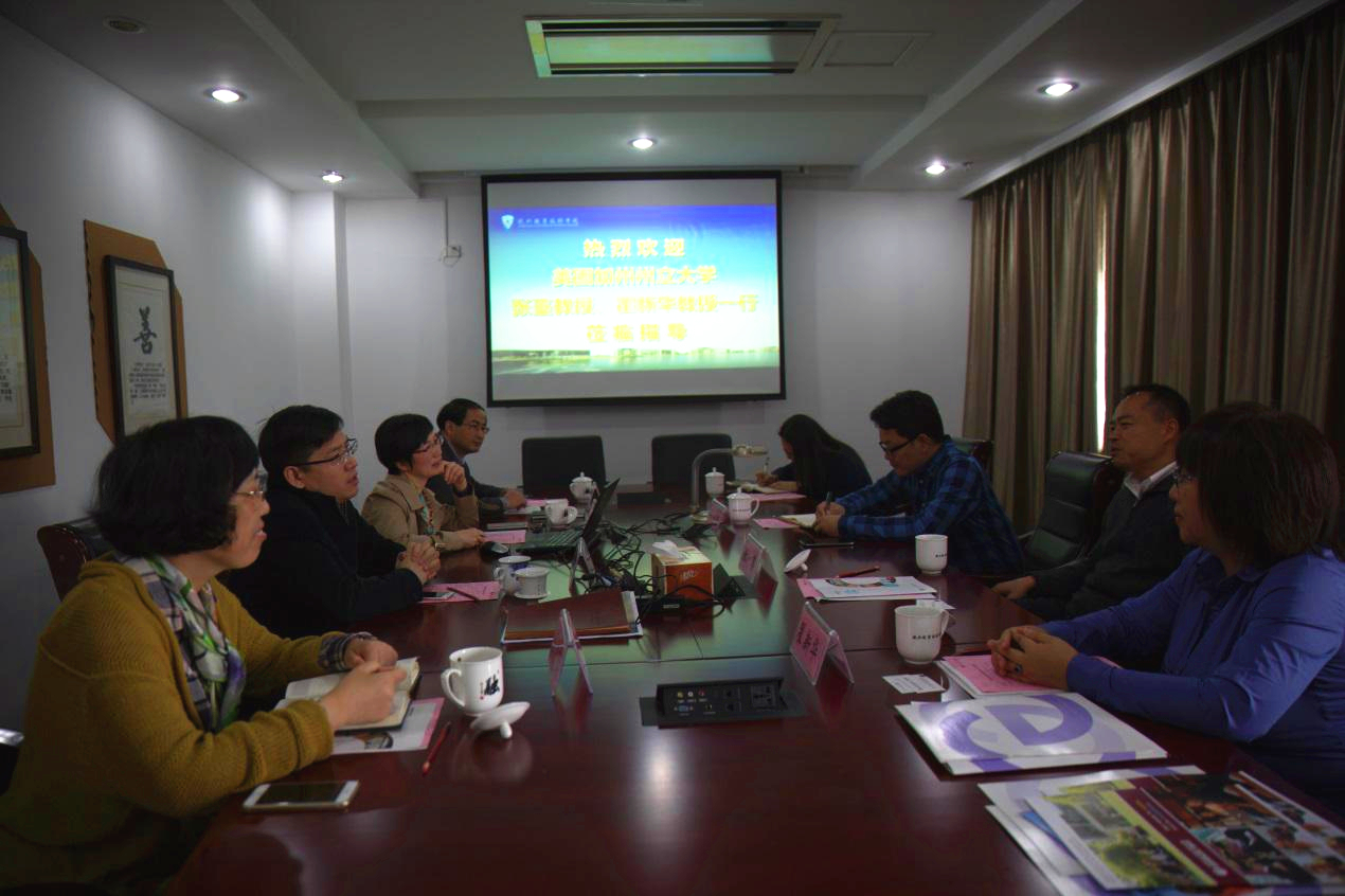 座谈会上,贾文胜首先介绍了我校的办学理念、办学特色与成效,并着重介绍了“十三五”期间我校加快推进国际化办学的主要思路。张鉴教授简要介绍了美国加州州立大学的专业设置以及与国内高校合作的有关情况。随后,双方就专业对接、预科项目、师资培训、学生游学等方面进行了意向性的交流与讨论,并希望后续能进一步的对接,加快推进中美项目的合作与实施。