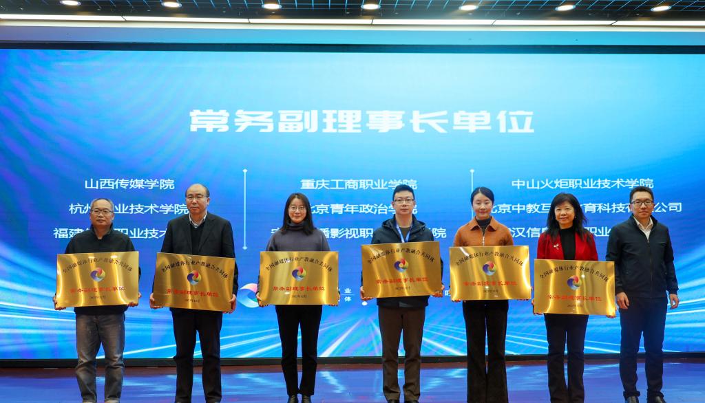 论坛上,与会成员一道见证了“全国融媒体行业产教融合共同体”成立,杭州职业技术学院当选共同体的常务副理事长单位。在论坛发言环节中,人民网发布了《2022-2023学年全国职业院校产教融合创新实践情况报告》,启动了2023-2024学年产教融合创新实践案例征集活动,推出了职业院校互联网“大思政课”共建机制。
