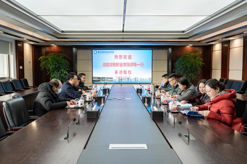 12月20日上午,湖北财税职业学院副校长刘彩霞一行来访我校调研电子商务专业群建设工作,副校长楼晓春,教务处、商贸旅游学院相关负责人参与接待。刘彩霞一行依次参观了商贸旅游学院、信息工程学院,随后双方在行政楼528会议室进行座谈。