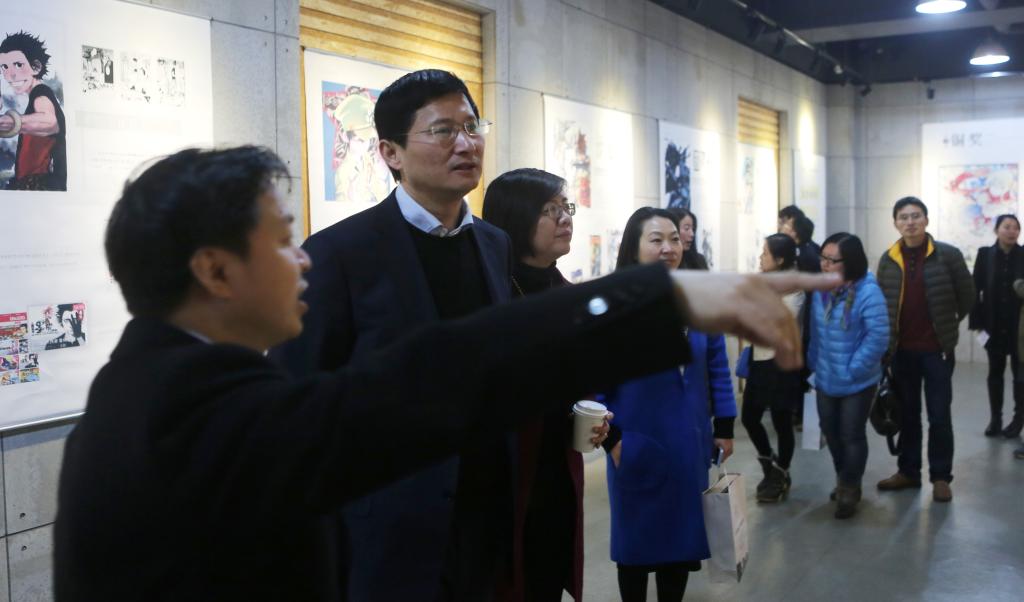 翻翻动漫集团总裁沈浩在致辞中表示,翻翻与杭州动漫游戏学院在人才培养上一直保持着紧密合作。2015年,共同成立了良筑良作定制班,联合开展漫画人才的高端培训、漫画家沙龙等活动;2016年,将在15级新生中组建翻翻班,实践现代学徒制培养模式。希望能借此次巡展机会,借力杭州动漫游戏学院搭建的“政、企、校”三方协同共育平台,建立产学衔接沟通机制,实现资源和服务的共享,双方合作共赢。