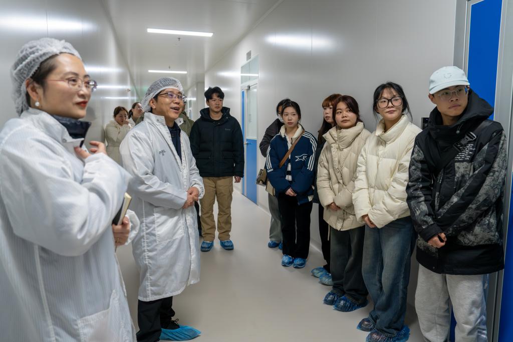 徐时清一行首先参观了浙江华海生物科技有限公司的生产车间和实验室,与生物制药专业2023届毕业生詹艺俊进行沟通与交流,恰巧现场观摩了生物制药2021级实习生在企业面试的情况。