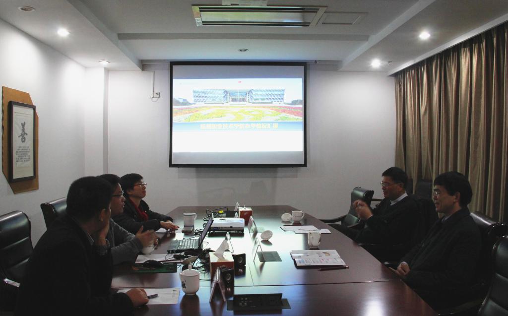来宾一行在校领导的陪同下参观了友嘉机电学院、学校实训中心暨杭州市公共实训基地、达利女装学院和电梯实训基地。双方在行政楼第五会议室进行了座谈交流。座谈会上,贾文胜从历史沿革与发展现状、政府支持与办学属性、跨界融合与校企共同体、专业发展与服务社会等方面详细介绍了我校的办学理念、办学特色和办学成就。