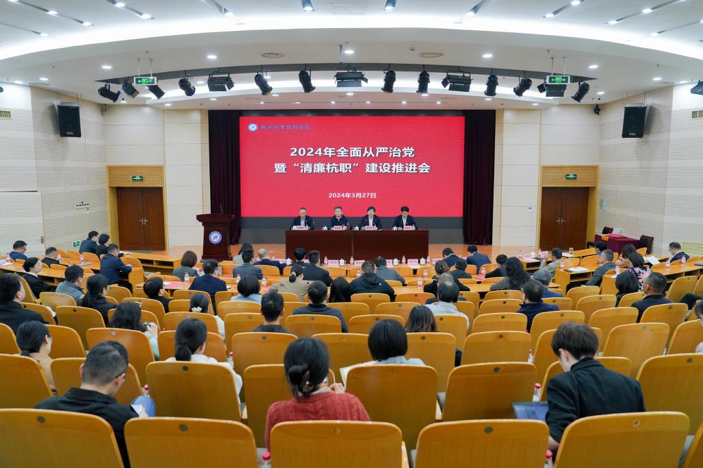 3月27日,学校召开2024年全面从严治党暨“清廉杭职”建设推进会,深入学习贯彻习近平总书记关于党的自我革命的重要思想以及中央、省市纪委三次全会精神,总结回顾2023年工作成效,分析研判当前工作形势,研究部署下一阶段重点任务,持续推进“清廉杭职”建设,为加快学校高质量发展提供坚强政治保障。