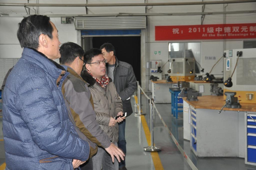 调研期间,贾文胜一行实地参观了各校的教学设施和实训基地,并听取了各校关于“十三五”发展思路和重点工作、办学特色与成效的介绍,并重点就机构设置与管理效能建设、现代学徒制人才培养改革、中德技术培训中心建设、定向培养直招士官政策等方面与各校领导及职能部门负责人进行了深入的交流探讨。