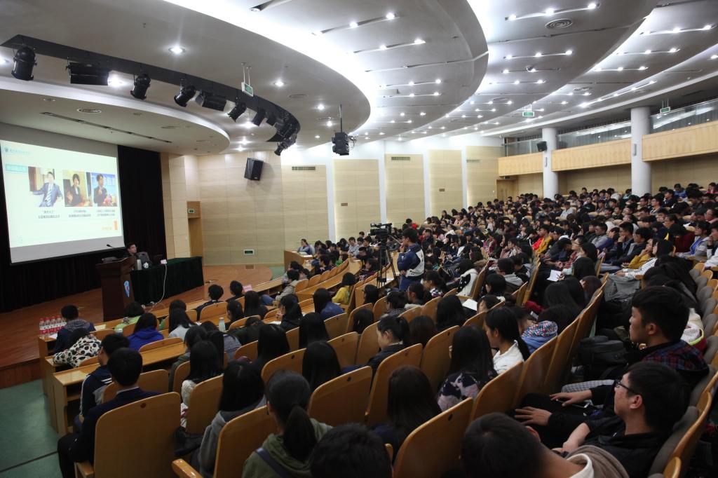 贾文胜以“我是谁?我想成为谁?”为主线,通过“梦想的力量”、“选择的智慧”和“审美的体验”三个篇章,与同学们畅谈职业生涯规划与发展。讲座全程贾文胜引经据典,还穿插着他自己的个人经历和人生体悟,既发人省醒,也让在场的师生获益匪浅。