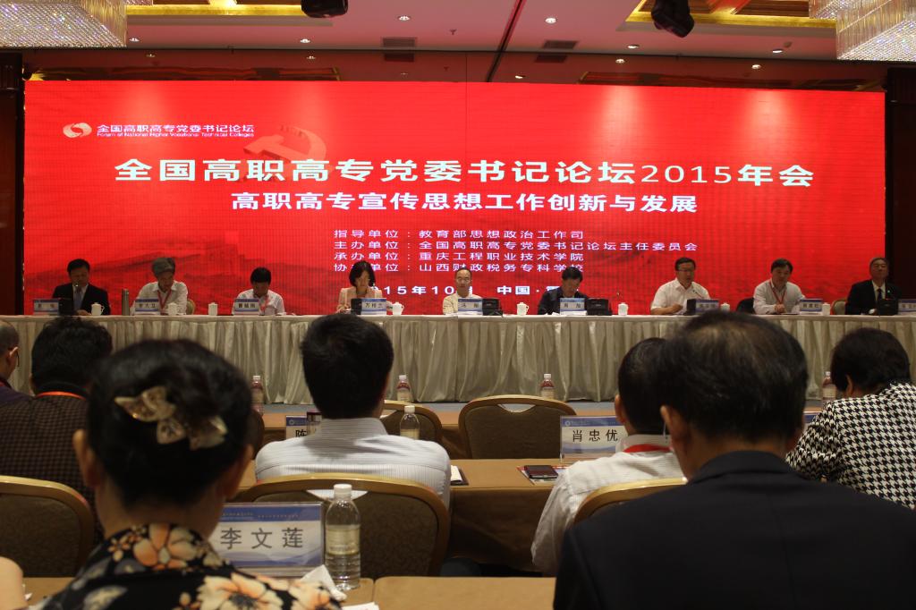 10月24日-25日,全国高职高专党委书记论坛2015年会在重庆工程职业技术学院召开,我校党委书记安蓉泉受邀参会并在分论坛作专题报告。