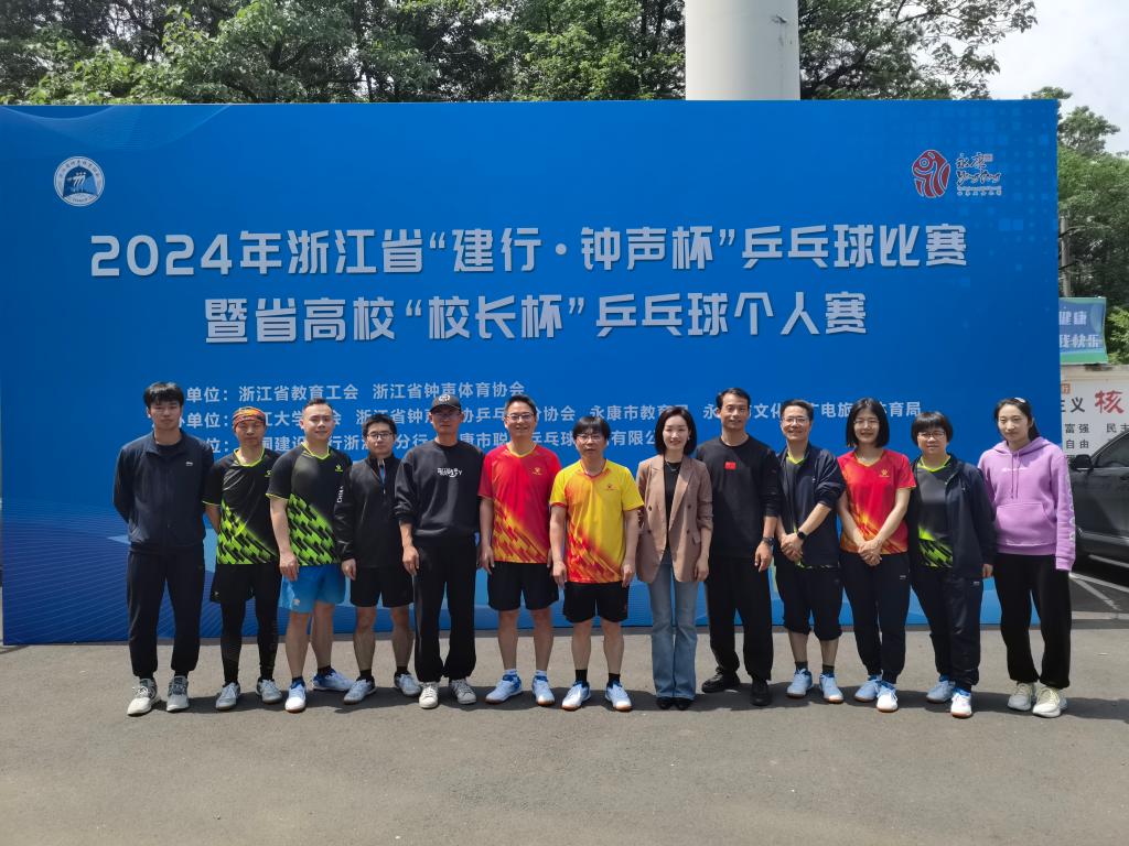 4月24日至27日,2024年浙江省“建行·钟声杯”乒乓球比赛暨省高校“校长杯”乒乓球个人赛在永康市举行。浙江省教育工会主席、省钟声体协主席王玉庆宣布比赛开幕,永康市委常委、宣传部部长施礼干、建行浙江省分行机构业务部副总经理刘志伟、省教育工会一级调研员、省钟声体协副主席兼秘书长葛海平、金华市总工会党组成员、经审会主任、教育工会主席吴飞、永康教育局党委书记、局长陈业根、永康市文广旅体局党委书记、局长施一军出席开幕式。