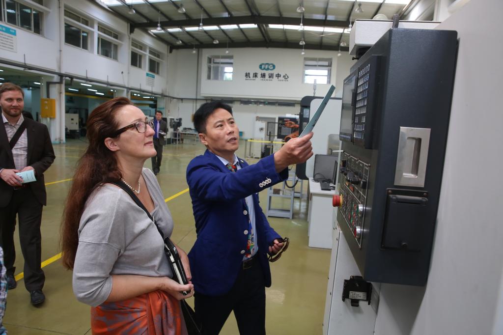 代表团一行饶有兴致地参观了友嘉机电学院、公共实训基地、达利女装学院、电梯实训基地、彩虹鱼康复护理学院和动漫游戏学院,实地考察了我校的校企共同体建设情况,对我校优美的校园环境和先进的实训设施赞叹不已。