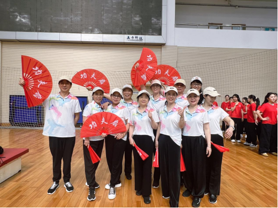 表演中,太极扇队的队员们身着统一的太极服,手持精美的太极扇,伴随着悠扬的音乐,开始了他们的表演。他们步伐稳健、动作流畅,扇子的开合与身体的转动完美配合,将太极扇的精髓展现得淋漓尽致。经过评委的严格评选,融善老年大学太极扇队凭借出色的表现荣获了特别贡献奖。这一奖项不仅是对他们技艺的肯定,更是对他们传承和弘扬太极拳文化的认可。