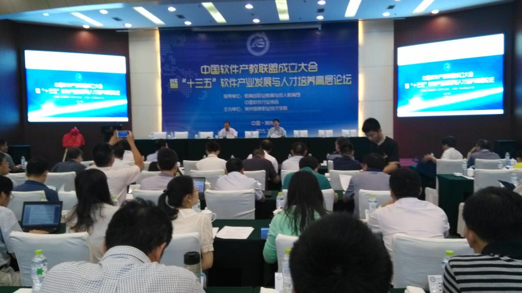 7月6日,我校党委副书记赵一文参加中国软件产教联盟成立大会暨“十三五”软件产业发展与人才培养高层论坛。本次大会由常州信息职业技术学院主办,来自全国职业院校、软件企业、省级软件行业协会等66家单位代表参加,教育部职业教育和成人教育司、中国软件行业协会、江苏省教育厅、江苏省经济和信息化委员会的领导出席会议。中国软件行业协会理事长赵小凡和江苏省教育厅副厅长苏春海共同揭牌。