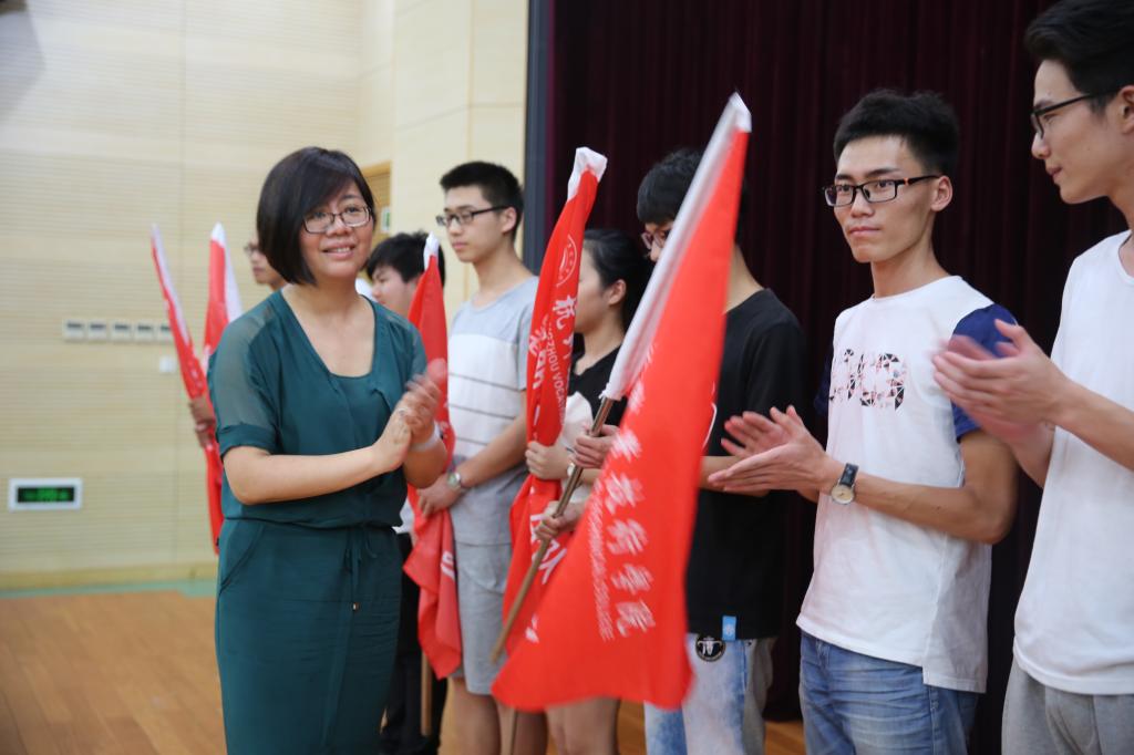 最后,赵一文为校级立项团队授旗并作大会总结讲话。她肯定了我校往年暑期社会实践成绩,并提出四点希望和要求:一要在实践中了解国情,认知社会;二要在实践中精心组织,确保安全;三要在实践中服务社会、彰显价值;四要在实践中加强宣传,扩大影响。她号召全体实践队员把所学所能转化为服务人民、服务社会的具体实践,自觉地把自己的梦想与伟大的“中国梦”紧密结合起来,以饱满的热情投入到暑期社会实践活动中去,努力在社会实践的大舞台上谱写出靓丽的青春乐章。