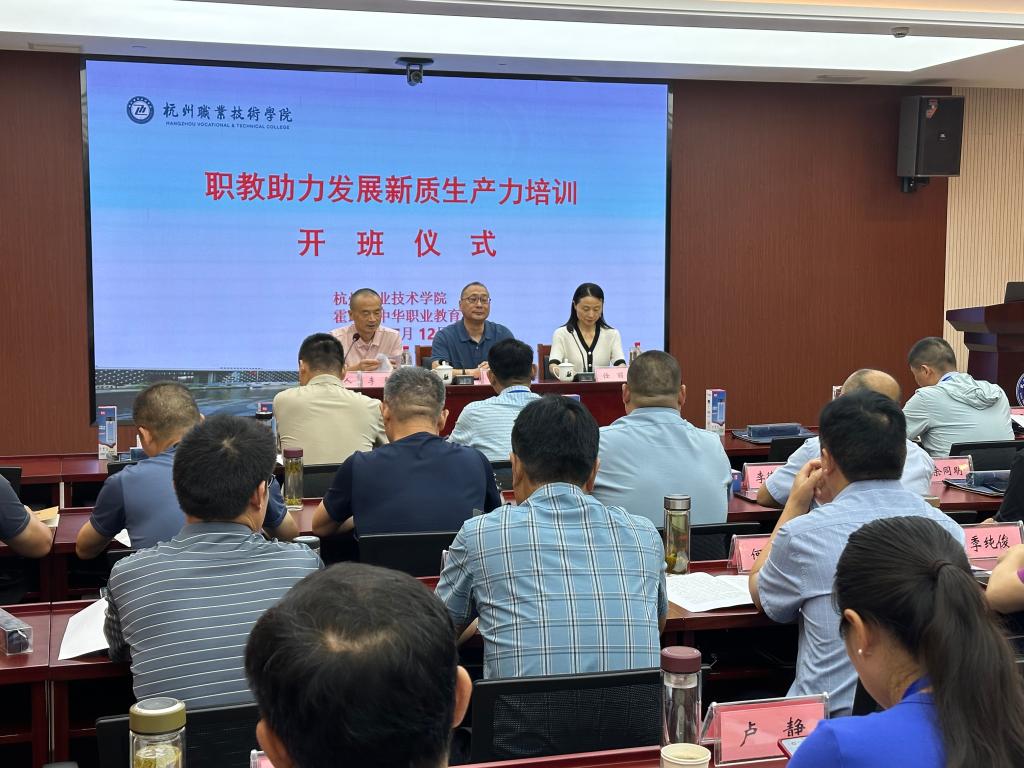 7月11日安徽霍邱县中华职业教育社职教助力发展新质生产力培训班在我校举行。我校党委委员、副校长袁俊,霍邱县人大常委会副主任、县职教社主任任丽,霍邱县中华职教社副主任、社务委员会副主任李春等出席了开班仪式。