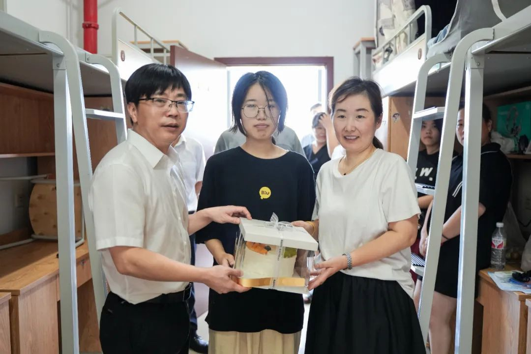 学校党委书记陈文岳、校长徐时清等学校党政班子领导前往各报到区查看迎新工作进展,了解新生报到情况,实地走访寝室并亲切与新生和家长交谈。为了让新同学们感受到学校的关心、关爱,校领导在“一站式”学生服务中心为学生资助对象发放“爱心大礼包”,为12名当天生日的同学送上蛋糕,表达美好祝愿。新同学和家长们处处可见学校的用心,时时能感受校园的温情。