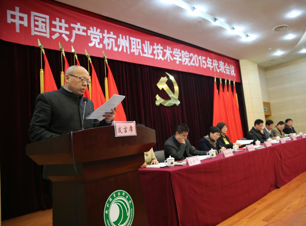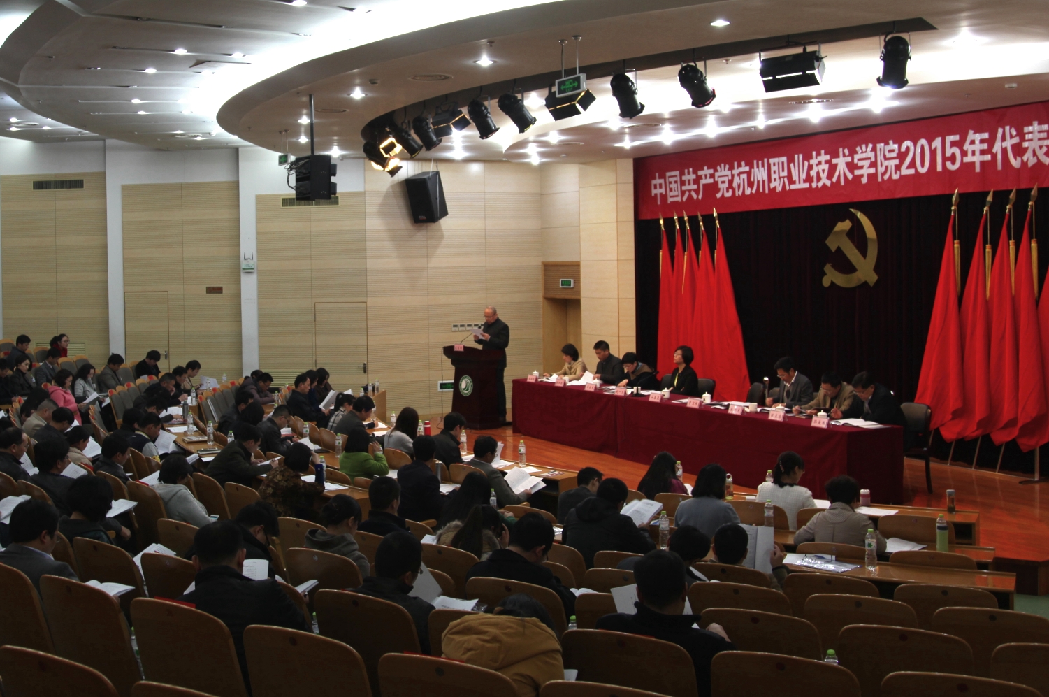 4月9日,中共杭州职业技术学院2015年党员代表会议在行政楼二楼报告厅召开,党委班子成员、全体党代表、非代表党员处级干部参加会议。会议由党委副书记赵一文主持。