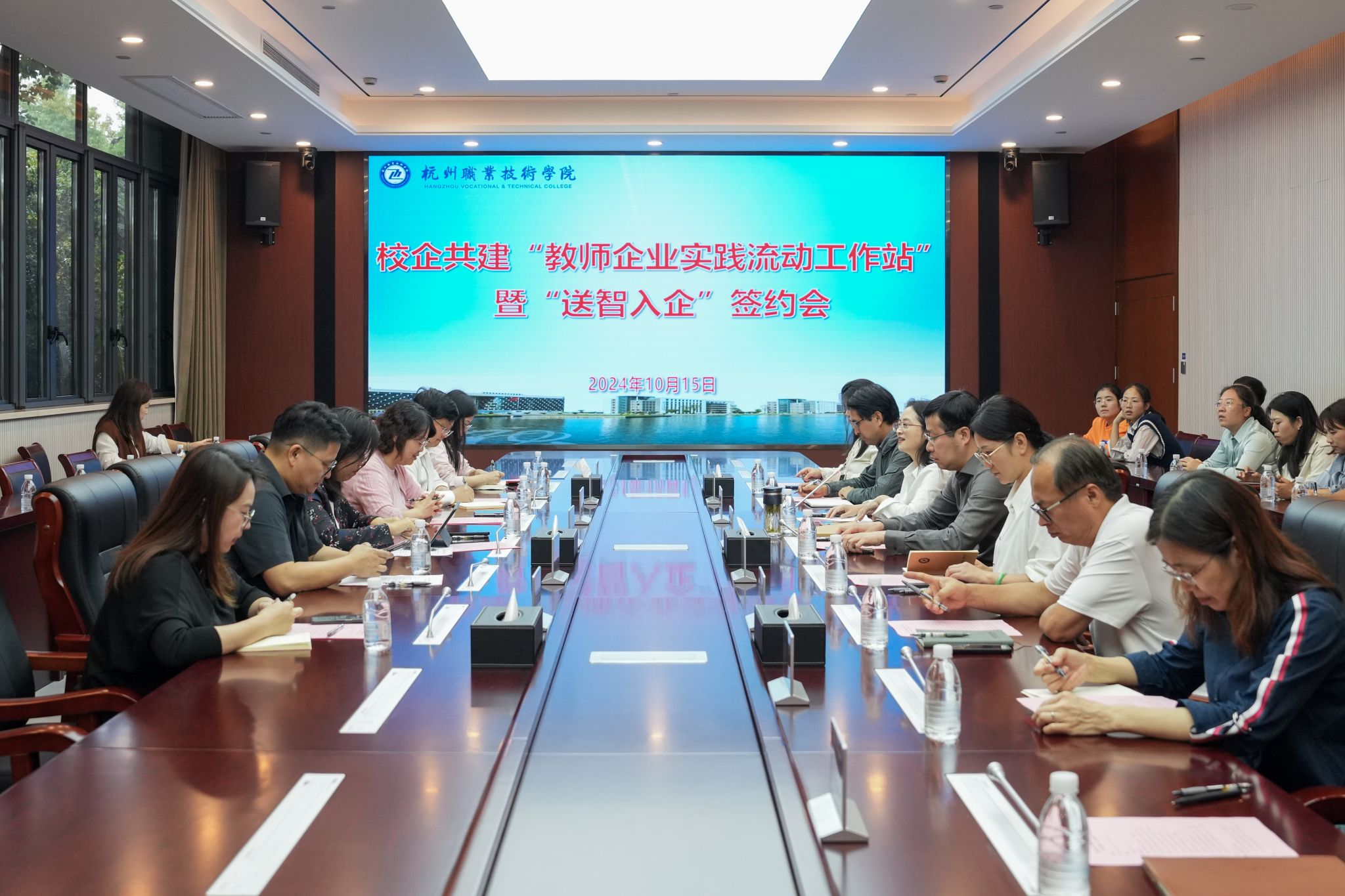 10月15日,校企共建“教师企业实践流动工作站”暨“送智入企”签约仪式在学校举行。钱塘科学城管理办公室副主任韩翠华、杭州联川生物技术股份有限公司、杭州朱养心药业有限公司企业代表、校党委副书记赖明诚、人事处处长龙艳、生态健康学院相关教师参加仪式。与会的还有来自学校的30多名博士代表。会议由生态健康学院院长何艺主持。