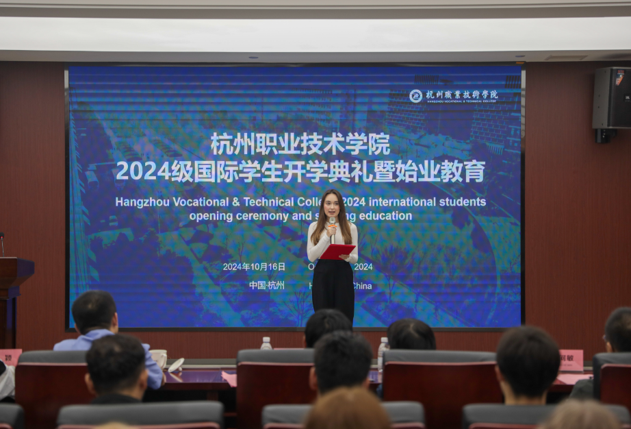 金秋时节,硕果盈枝。10月16日下午,学校2024级来华留学生开学典礼暨始业教育在行政楼117会议室举行。校长徐时清,杭州市公安局钱塘分局出入境管理大队副教导员刘景璐,教务处、国际处、学生处、保卫处、后勤中心等部门负责人参加典礼仪式。来自俄罗斯、乌兹别克斯坦、吉尔吉斯斯坦、摩洛哥、越南、塔吉克斯坦等国家的留学生齐聚一堂,共同开启在杭职院的学习之旅。