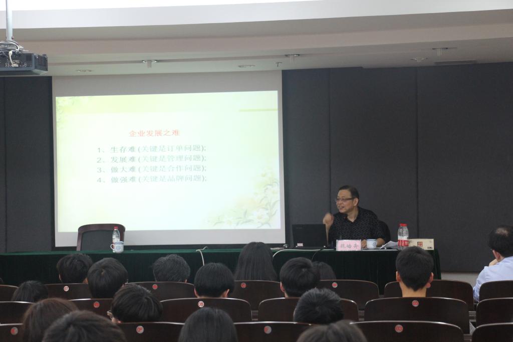 魏皓奔从母系社会发展引出文化创业产业的概念,阐述其是以创业为核心,以文化为灵魂,以科技为支撑,以知识产权的开发和运用为主体的知识密集型、智慧主导型战略产业。接着从文化创意产业的发展规律、特点、发展中品牌、商业模式、中介机构、企业发展的关节点等六方面进行了讲解,尤其在讲到企业发展难时候,结合自身工作经验,从生存难(订单问题)、发展难(管理问题)、做大难(合作问题)到做强难(品牌问题),漫谈式地引入了相关内容,1984年洛杉矶奥运会商业模式、两会中总理李克强提的“互联网+农业”行动计划等案例信手拈来,让师生们开阔了视野,增进了对文创产业发展动态的认识。
