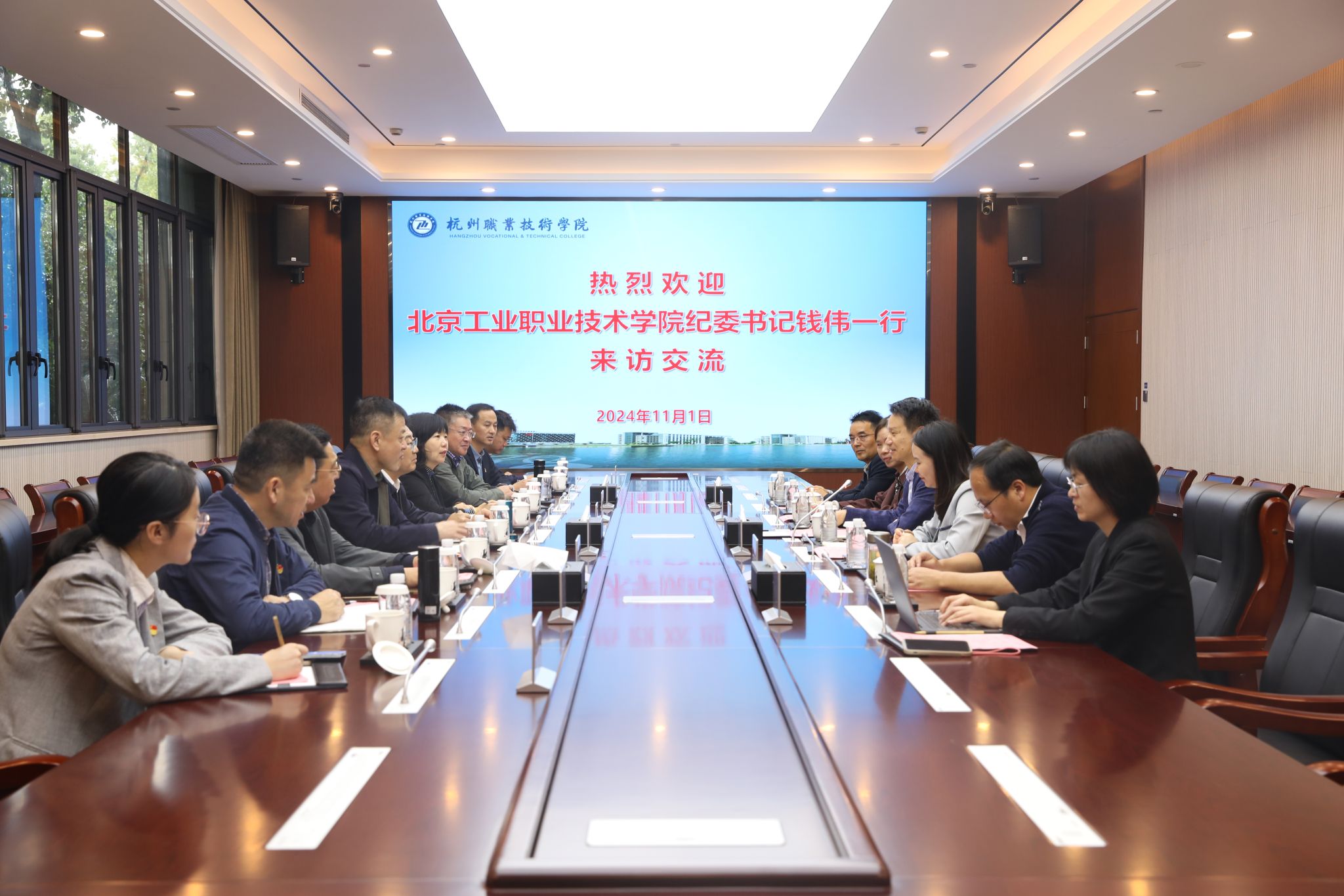 11月1日上午,北京工业职业技术学院党委委员、纪委书记钱伟一行9人来访我校。我校党委委员、纪委书记高云飞等参加接待。双方在行政楼129会议室进行座谈交流。