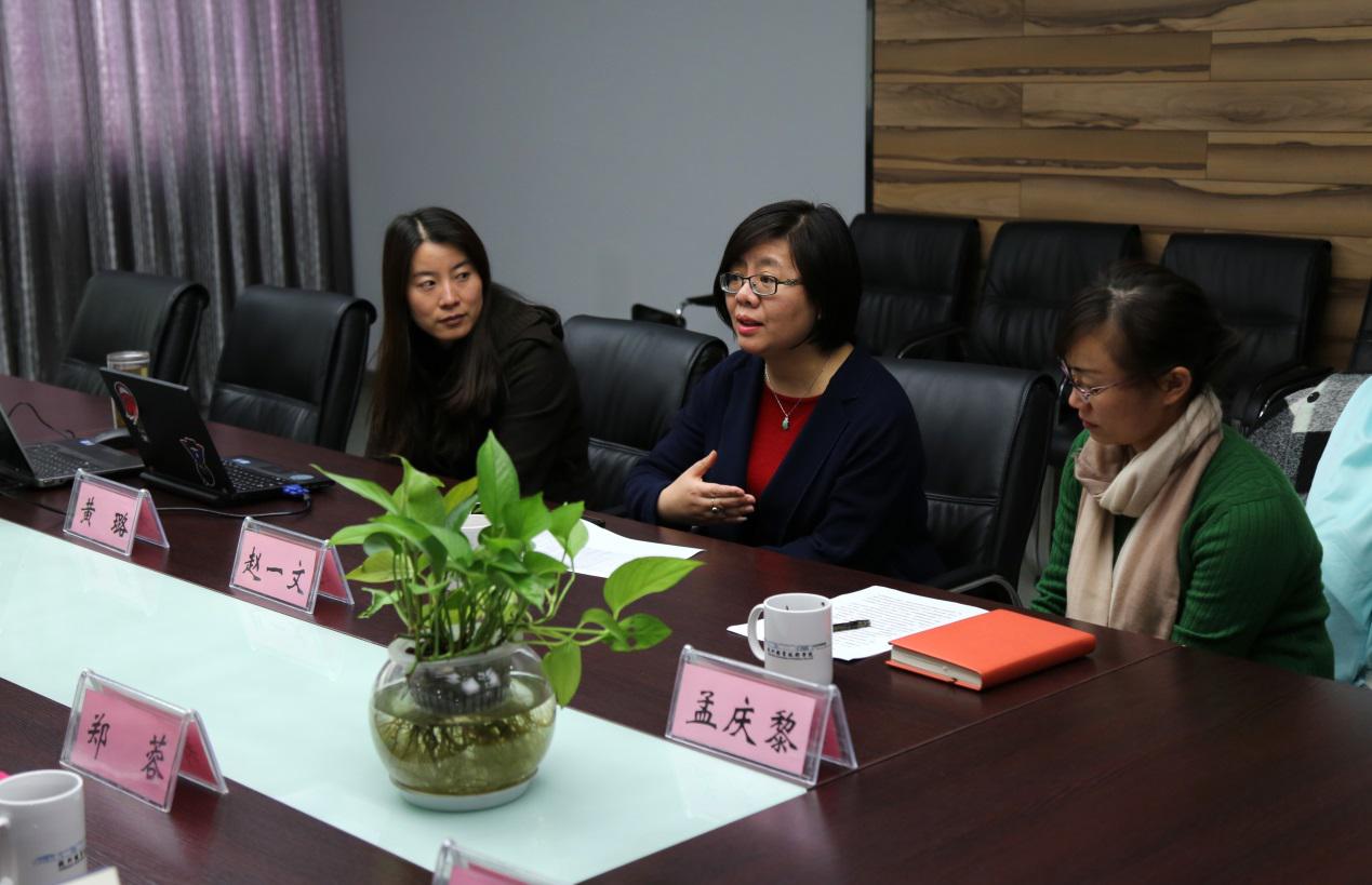 下午,与会人员在307会议室召开座谈交流会。动漫艺术学院副院长黄璐代表学院,汇报了学院的基本情况和2015年重点工作的介绍。赵一文在听取报告过程中,不时打断汇报,做一些及时的交流和记录,对学院产学对接项目的建设和文创项目的申报等提出了很多建设性的指导。
