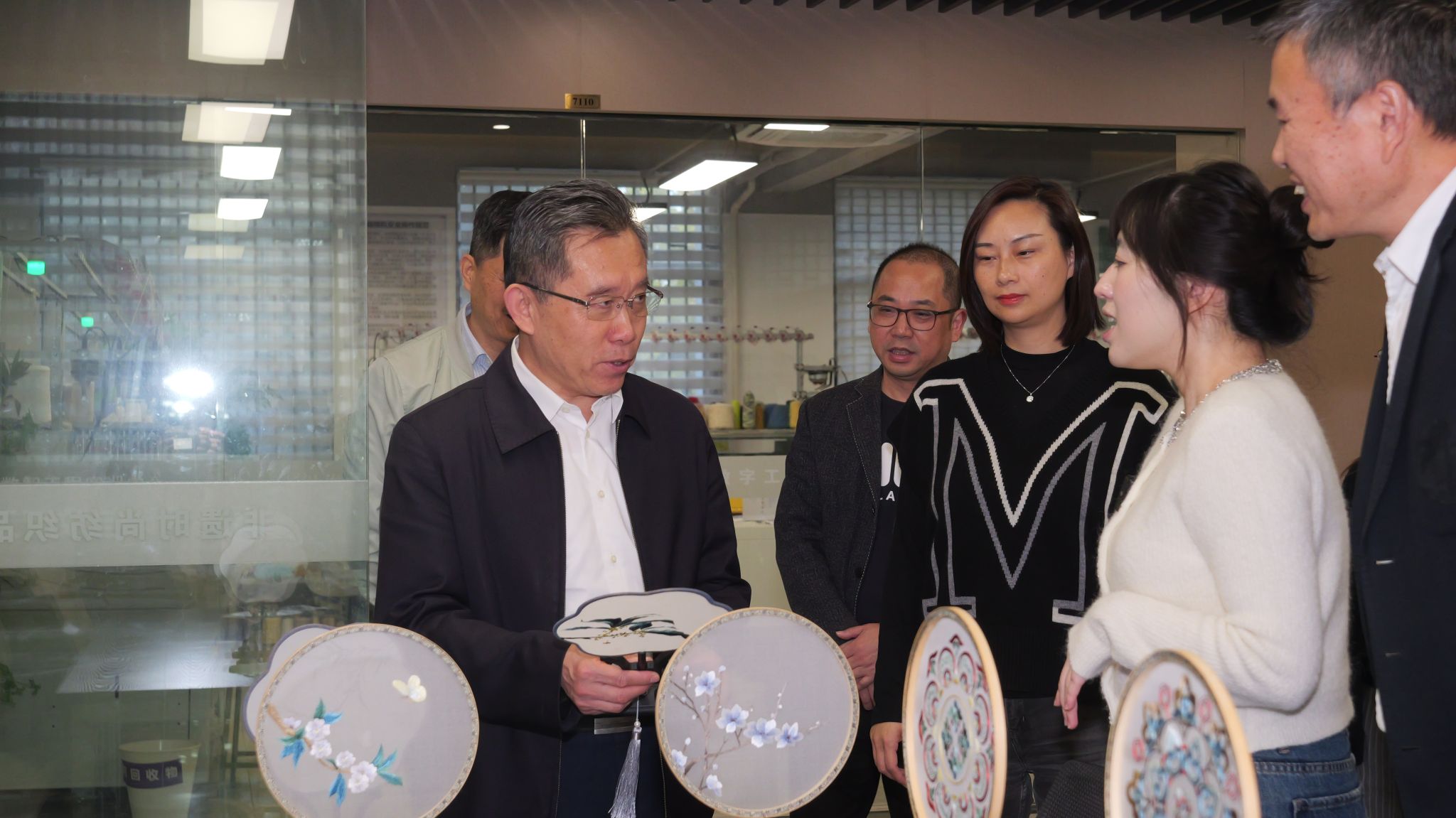 11月12日下午,杭州市经信局二级巡视员杨荣欣、消费品产业处处长程柳梁、副处长刘文吉一行莅临我校,对非遗大师进校园项目进行专题调研。学校党委委员、组织(统战)部部长韩亮,达利女装学院党总支书记王天红、院长郑小飞,大师进校园项目负责教师王慧、柴祝平一同参加。