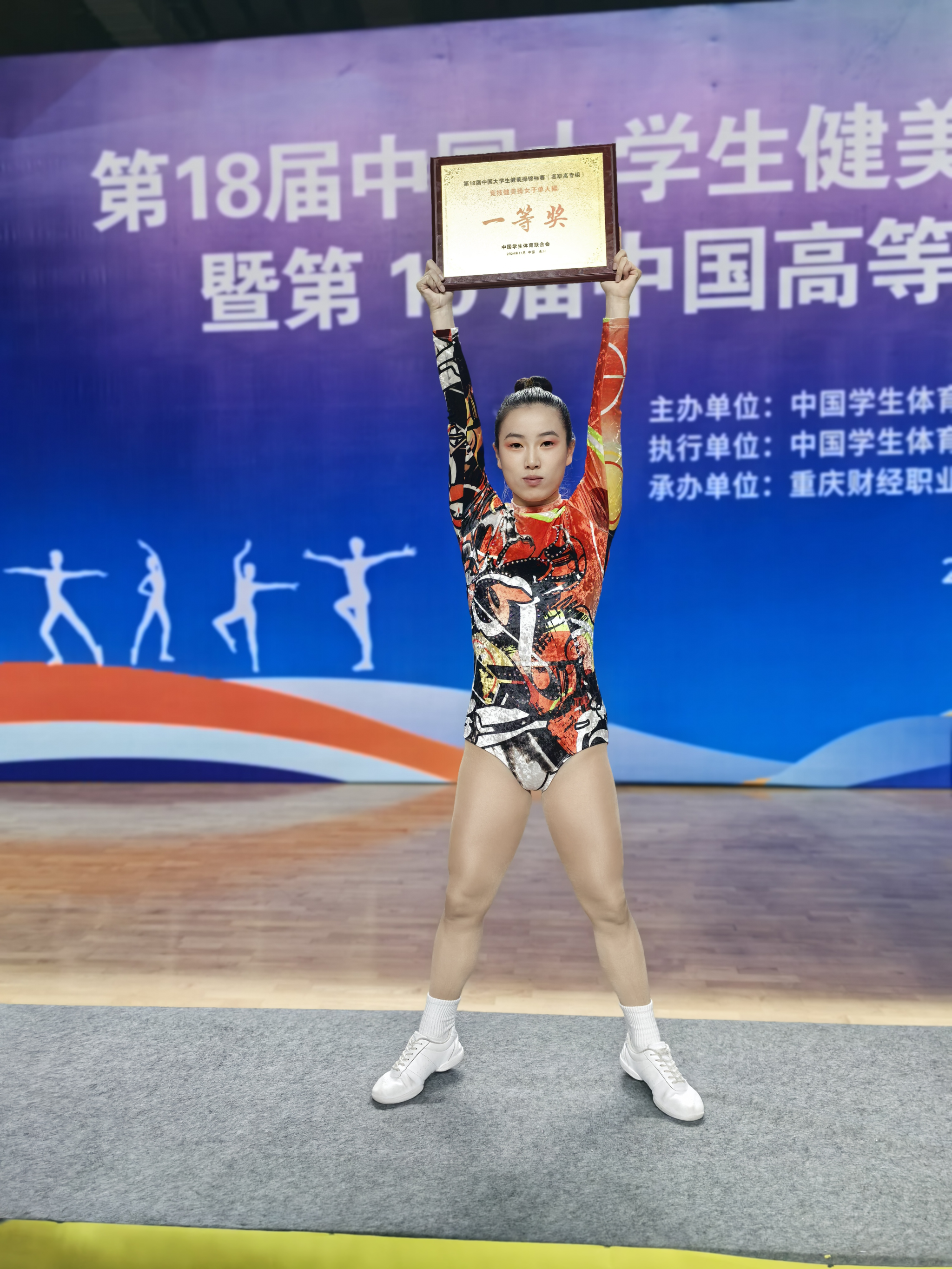 11月14日至18日,第18届中国大学生健美操锦标赛(高职高专组)暨第10届中国高等职业院校健美操锦标赛在重庆永川举行。本次大赛吸引了来自全国的43所高校500多名学生的参赛,竞争异常激烈。我校动漫游戏学院影视2321班的杨佳怡同学在公共基础部金余囡老师的指导下,凭借出色的表现,在自编女子单人操项目中荣获全国第2名(一等奖)的好成绩。