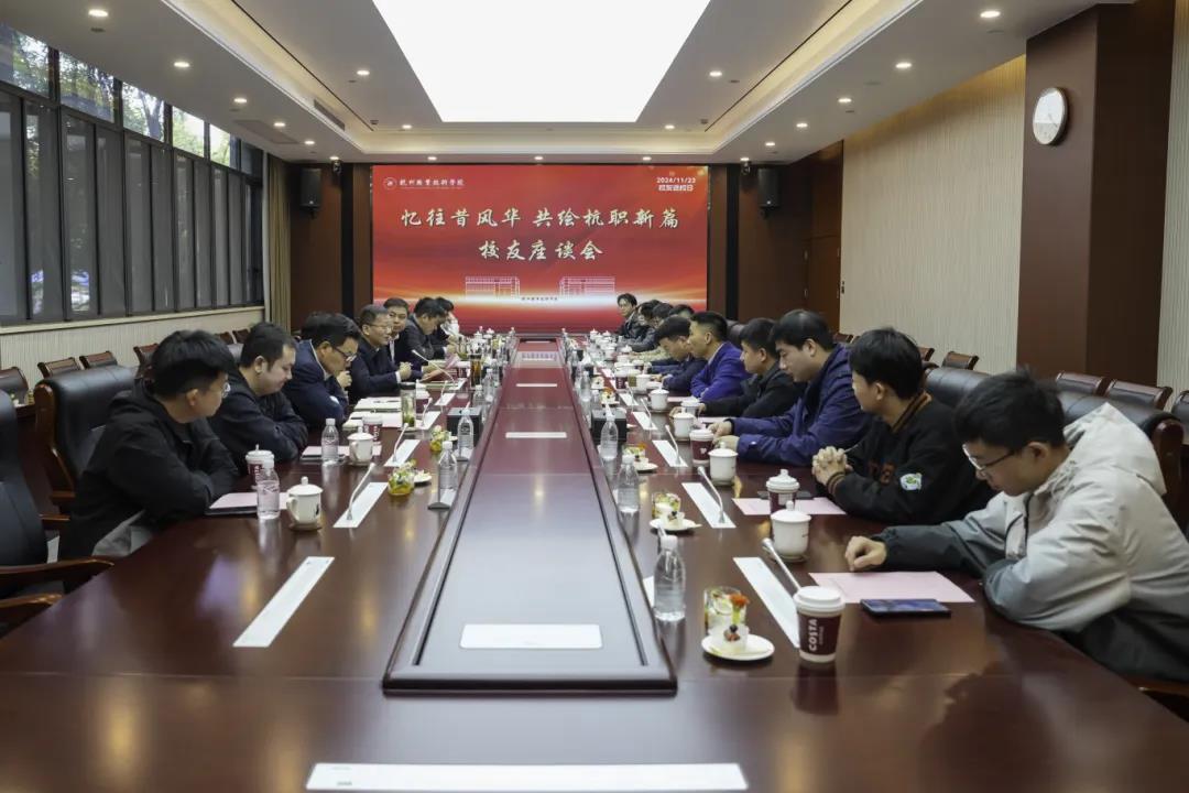 一场主题为“忆往昔风华,共绘杭职新篇”的校友座谈会在行政楼129会议室开展。陈文岳、程利群和相关职能部门负责人与校友代表一起追忆校园岁月,共同为学校高质量发展建言献策。