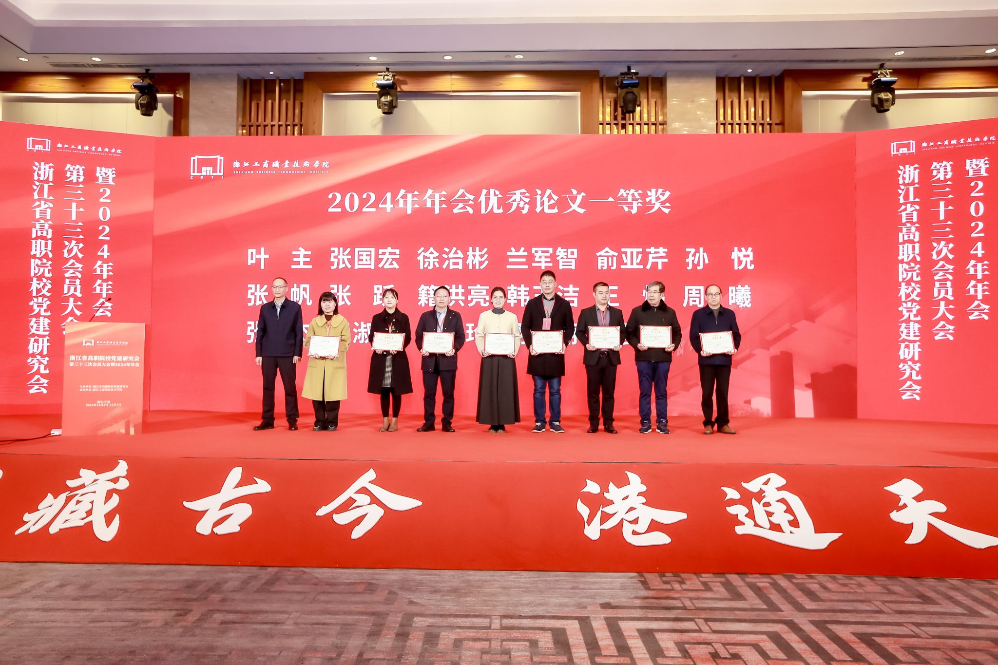 12月5日至7日,浙江省高职院校党建研究会第三十三次会员大会暨2024年年会在宁波召开。中国高等教育学会第六届理事会会长瞿振元,宁波市副市长徐强,浙江省委教育工委专职副书记、省教育厅党组副书记许翰信,浙江省教育厅组织处处长陈钦林,宁波市教育局副局长、党委委员陈金辉,浙江省高职院校党建研究会会长周建松,来自山东、江西及省内20余位高职院校党委书记、校长,全省50所高职院校200余名代表参加会议。我校党委书记陈文岳作为副会长单位出席会议,党委委员、宣传部长、研究会理事兼副秘书长张杰和组织部相关人员参会。会议由浙江工商职业技术学院承办。