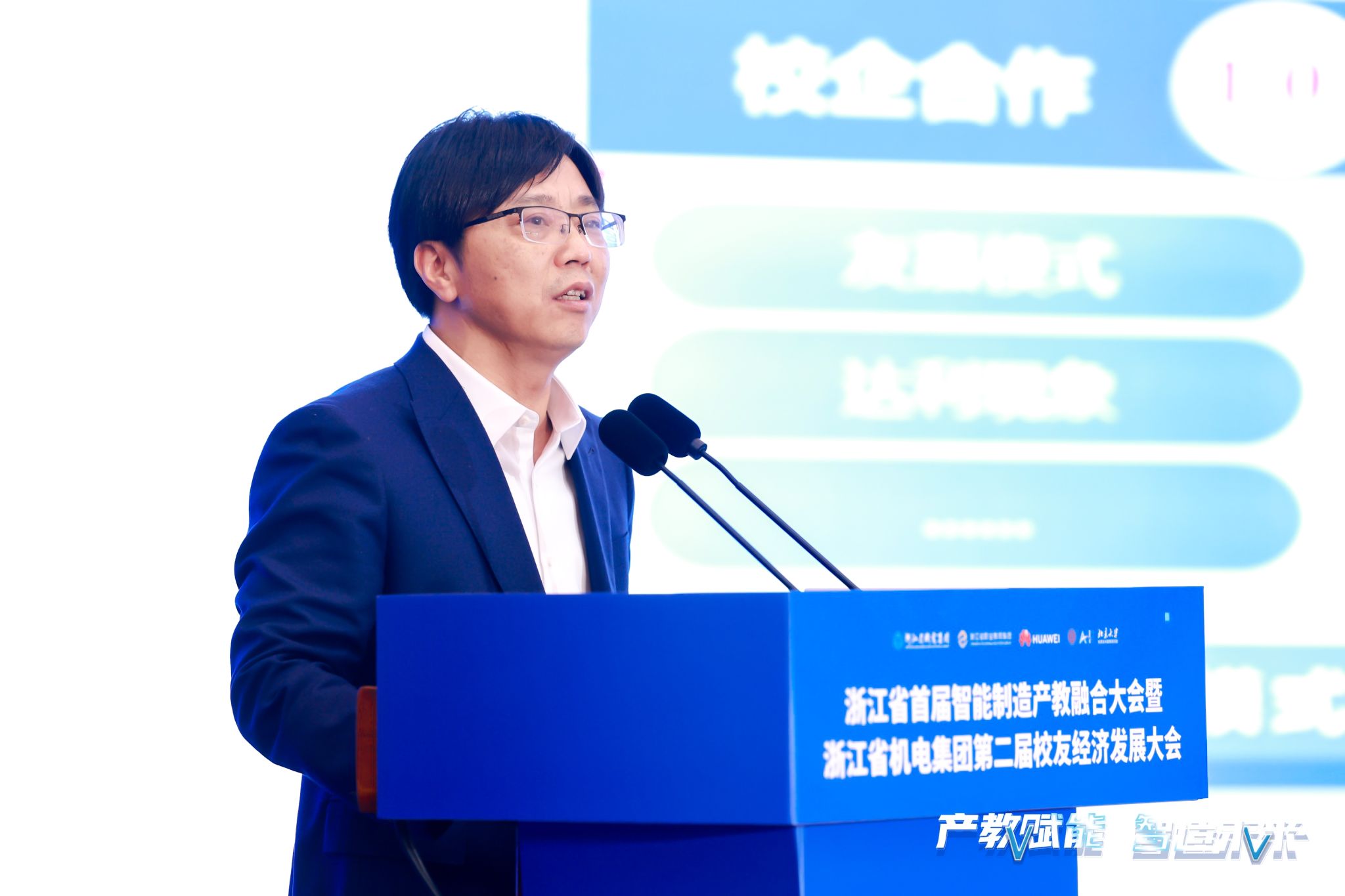 12月7日,以“产教赋能 智造未来”为主题的浙江省首届智能制造产教融合大会暨浙江省机电集团第二届校友经济发展大会在杭州举行。本次会议由浙江省机电集团有限公司、华为技术有限公司、北京大学信息技术高等研究院共同主办。浙江省国资委党委专职副书记蒲晓斌,中共浙江省委教育工委委员、省教育厅党组成员、副厅长陈峰,华为浙江总经理赵蕊出席大会并致辞。校长徐时清应邀出席会议并做主旨报告。