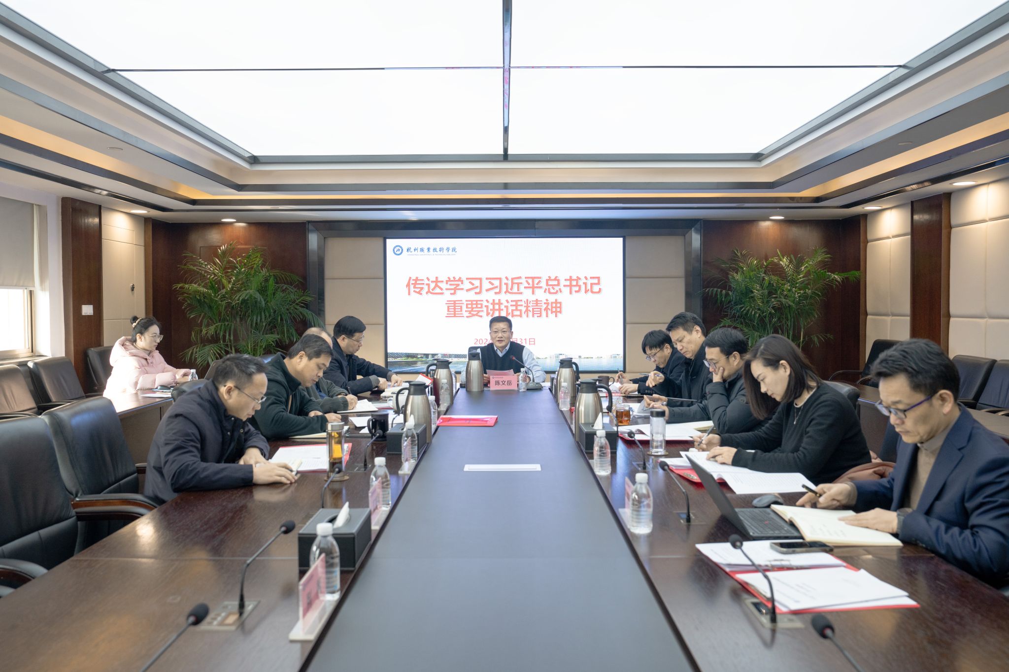 12月31日,学校党委会举行“第一议题”学习会,认真学习领会习近平总书记在中央政治局民主生活会上的重要讲话精神,紧密结合学校实际研究贯彻落实举措,确保党中央决策部署在学校落地见效。校党委书记陈文岳主持会议并讲话,全体校领导班子成员参加。