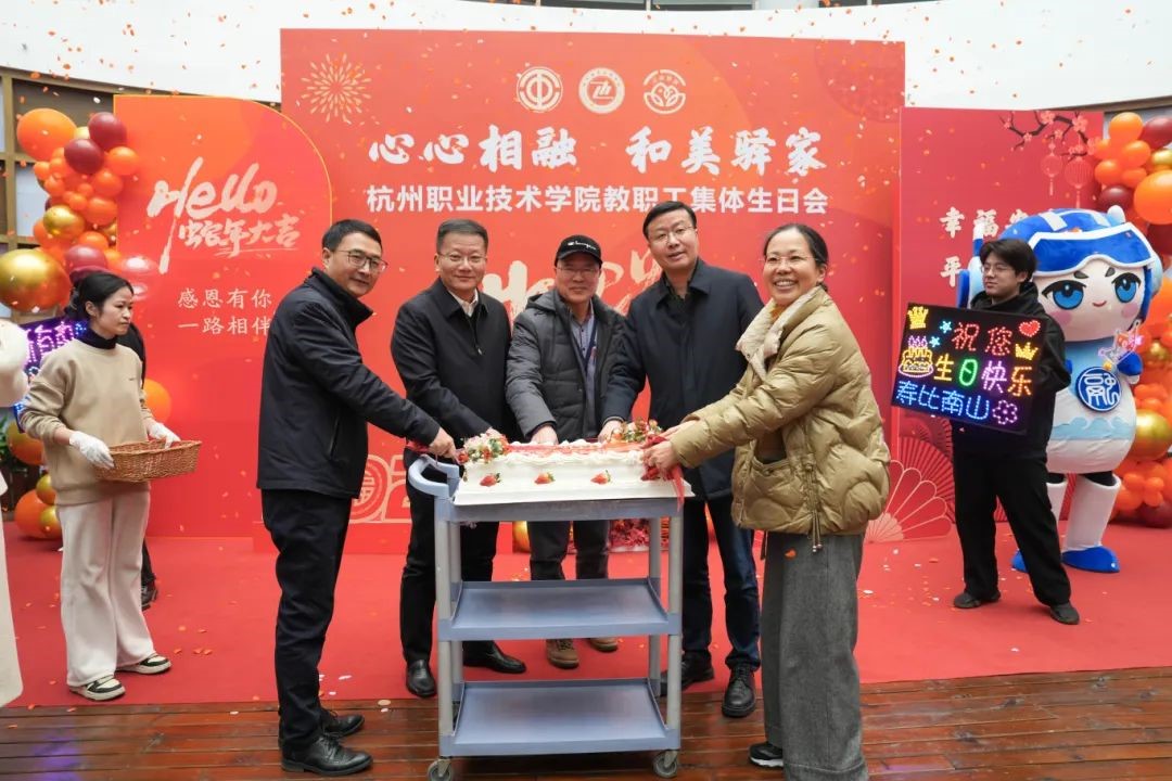1月13日下午,友嘉智能制造学院学术交流区暖意融融、欢声笑语。杭州职业技术学院工会在此隆重举办“心心相融·和美驿家”系列集体生日活动的开篇盛会。校党委书记陈文岳、校党委副书记兼工会主席赖明诚,与1月生日的党委委员副校长楼晓春、即将荣休的周佳良老师等65位教职工,以及各分工会主席齐聚一堂,携手共襄盛举,共同见证这一意义非凡、温馨满满的美好时刻。