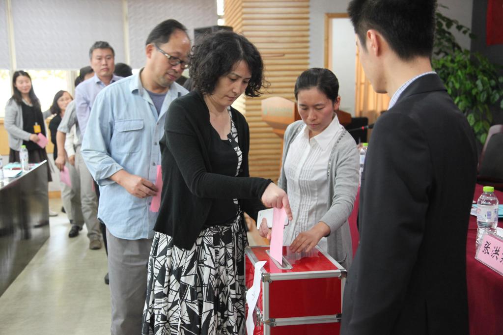 大会在庄严雄壮的中华人民共和国国歌声中开始。发展研究中心主任丁学恭教授作学术委员会筹备工作报告和有关事项说明。随后,大会分别审议通过候选人建议名单、学术委员会选举办法、监票人及计票人名单。最后,大会以无记名投票方式民主选举出15名学校第一届学术委员会委员。