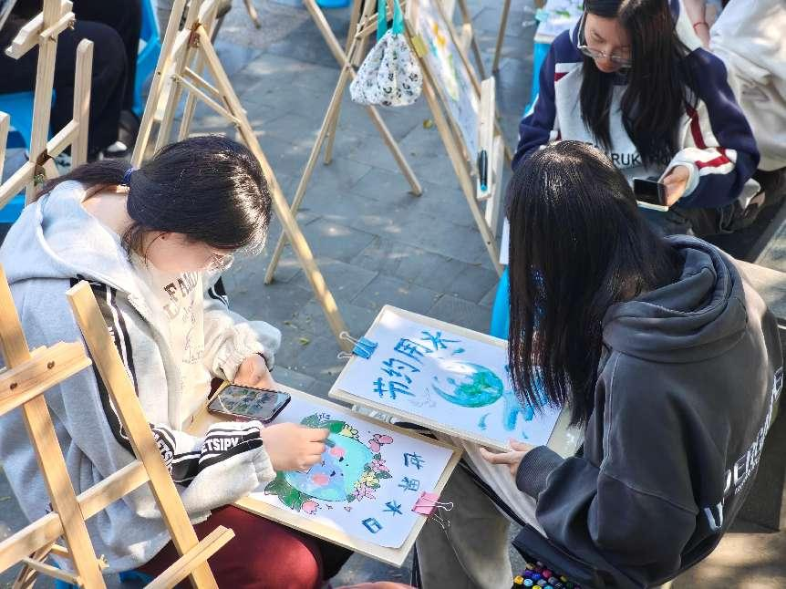 活动现场,动漫游戏学院青年护水志愿者心怀憧憬,在纸上勾勒出一幅幅美好画作,既有青山碧水的优美风光,也有水上家园的未来图景。志愿者们还开展了水质检测演示、生态环保宣传册发放、护水知识竞答等活动,将爱水节水护水教育引向深入。