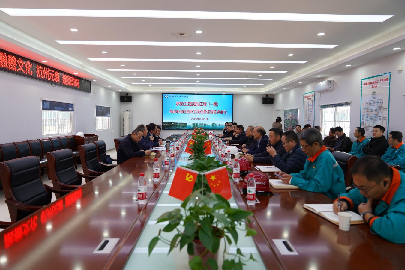4月1日,杭州市政府重点工程派驻综合监督组组长张文戈,副组长朱应华、管杰,组员薛劲松一行,赴杭州职业技术学院新安江校区建设工程(一期)专项督导调研。学校党委委员、副校长袁俊陪同,各参建单位相关负责人参加。