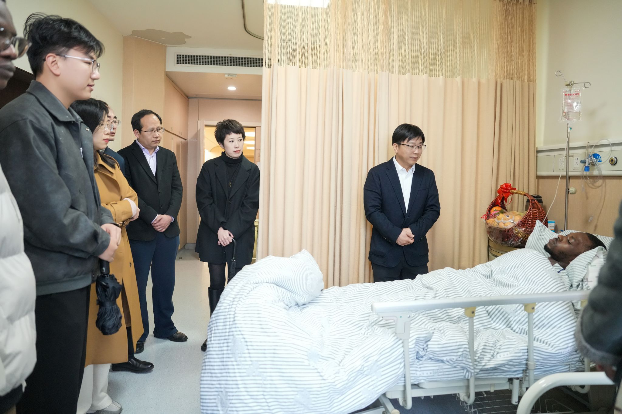 3月27日,尼日利亚学历留学生Kolapo突发急症,情况紧急,学校第一时间联系医院展开救治,经专家会诊评估,当日成功实施手术,术后情况稳定。住院期间,校长徐时清率国际处及相关部门、二级学院负责人赴院探望,详细了解治疗方案及康复进展。病愈之际,Kolapo亲笔书写感谢信,深情表达对学校关心照护的诚挚感谢。