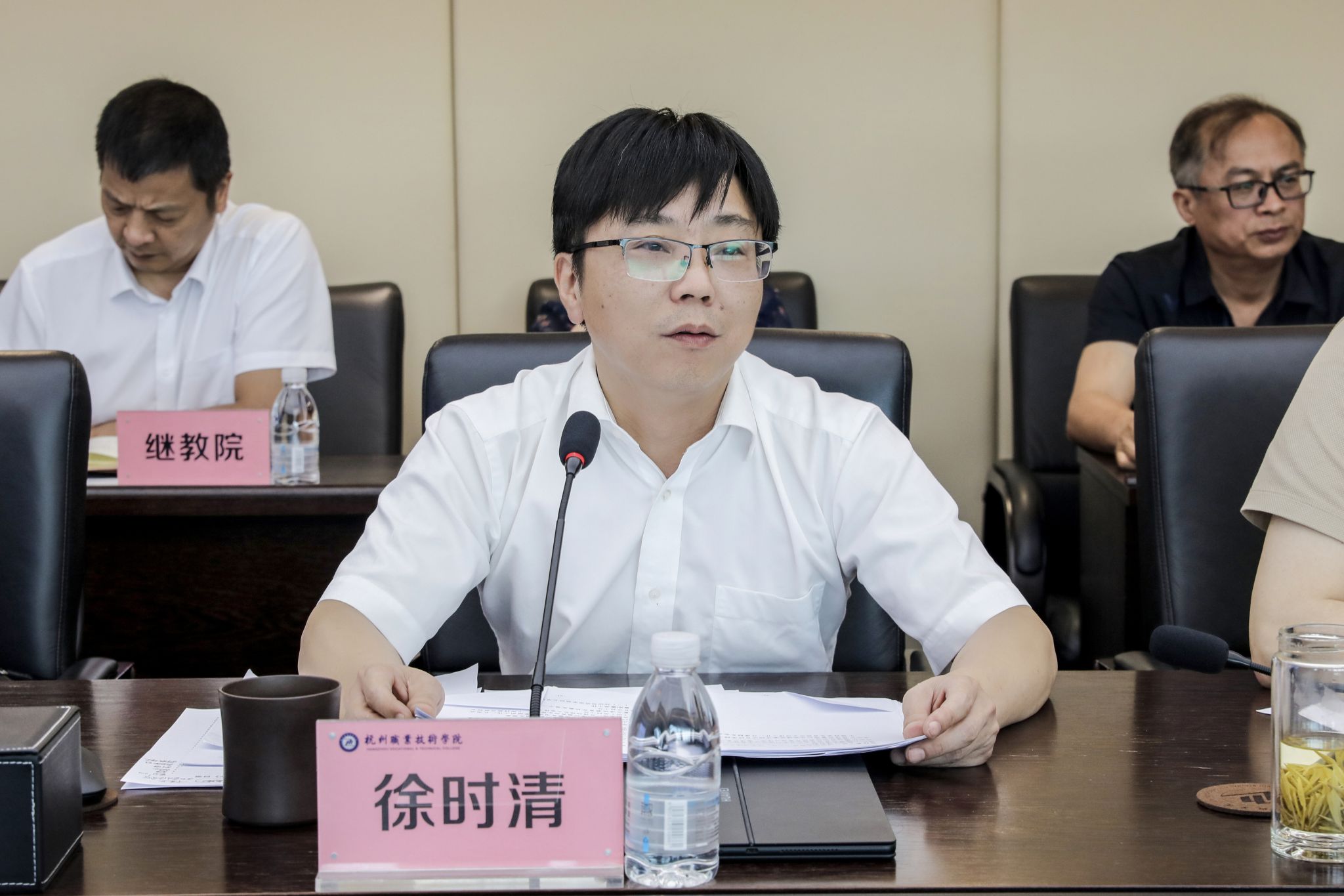 赖明诚、袁俊、楼晓春、程利群结合分管工作对下一阶段工作任务作了具体部署。各行政职能部门和教学单位在会上作了交流发言。