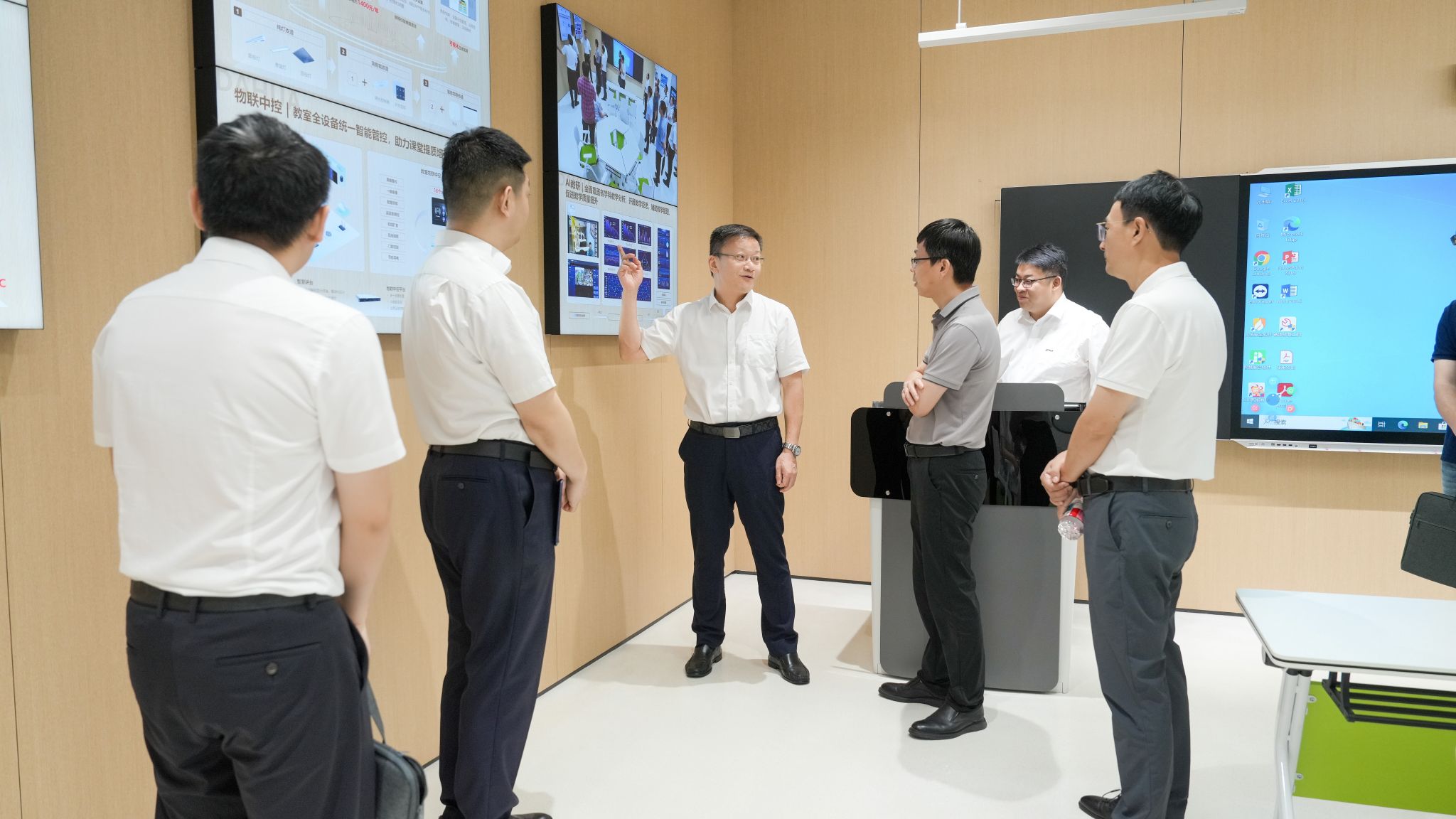 陈文岳一行实地参观了浙江大华技术股份有限公司展厅。公司相关负责人详细介绍了大华股份的发展历程,并重点展示了公司自主研发的星汉大模型在智慧教育、交通枢纽、社会治理等领域的创新应用成果。