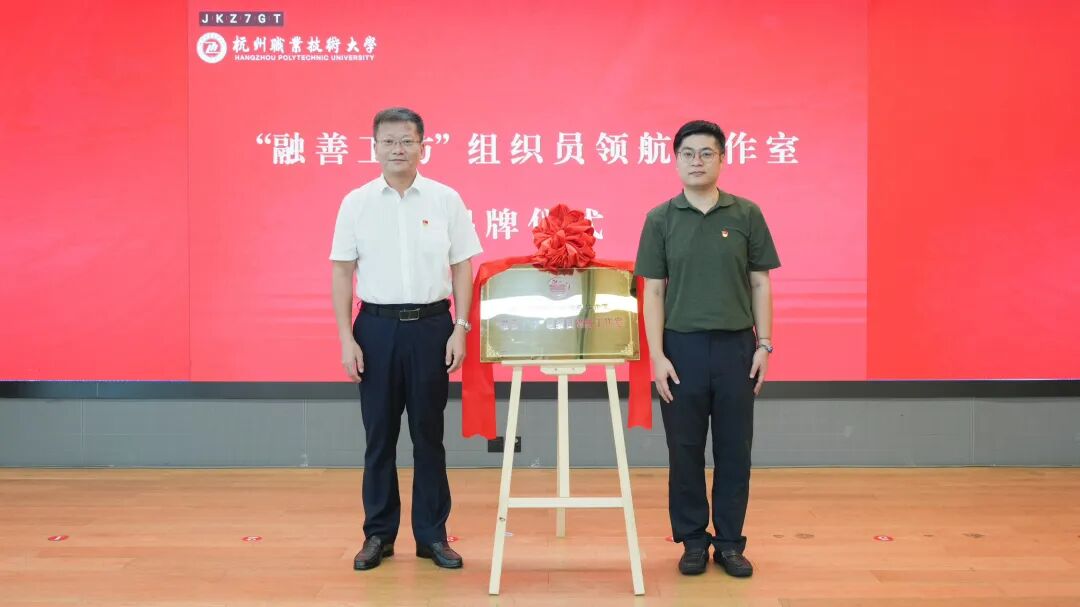 在与会嘉宾的共同见证下,陈文岳与学员代表浙江音乐学院音乐工程系组织员徐卓群共同为“融善工坊”组织员领航工作室揭牌,标志着工作室各项建设工作全面启动。