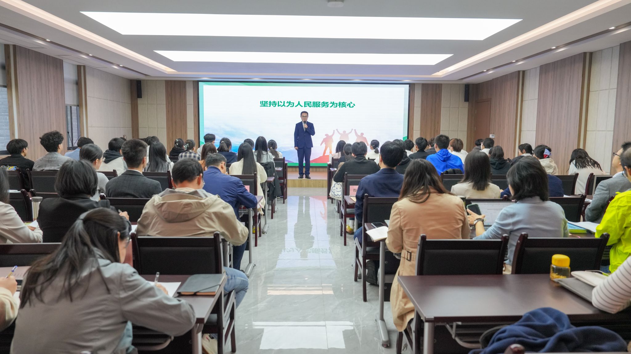 思政教师陈建磊以“社会主义道德核心——为人民服务”为题开展示范教学。陈老师坚持问题导向,通过问题链设置“为什么要为人民服务”“如何为人民服务”“为人民服务——我行吗?”,层层递进剖析教学主题。他熟练融合多种教学方法,巧妙应用AI技术,从理论、现实、人生价值三个维度深度讲解课程内容,最后以本校学生参加西部计划典型事迹,激励引导学生从“大我”视角理解人生价值,积极投身为人民服务的实践中。