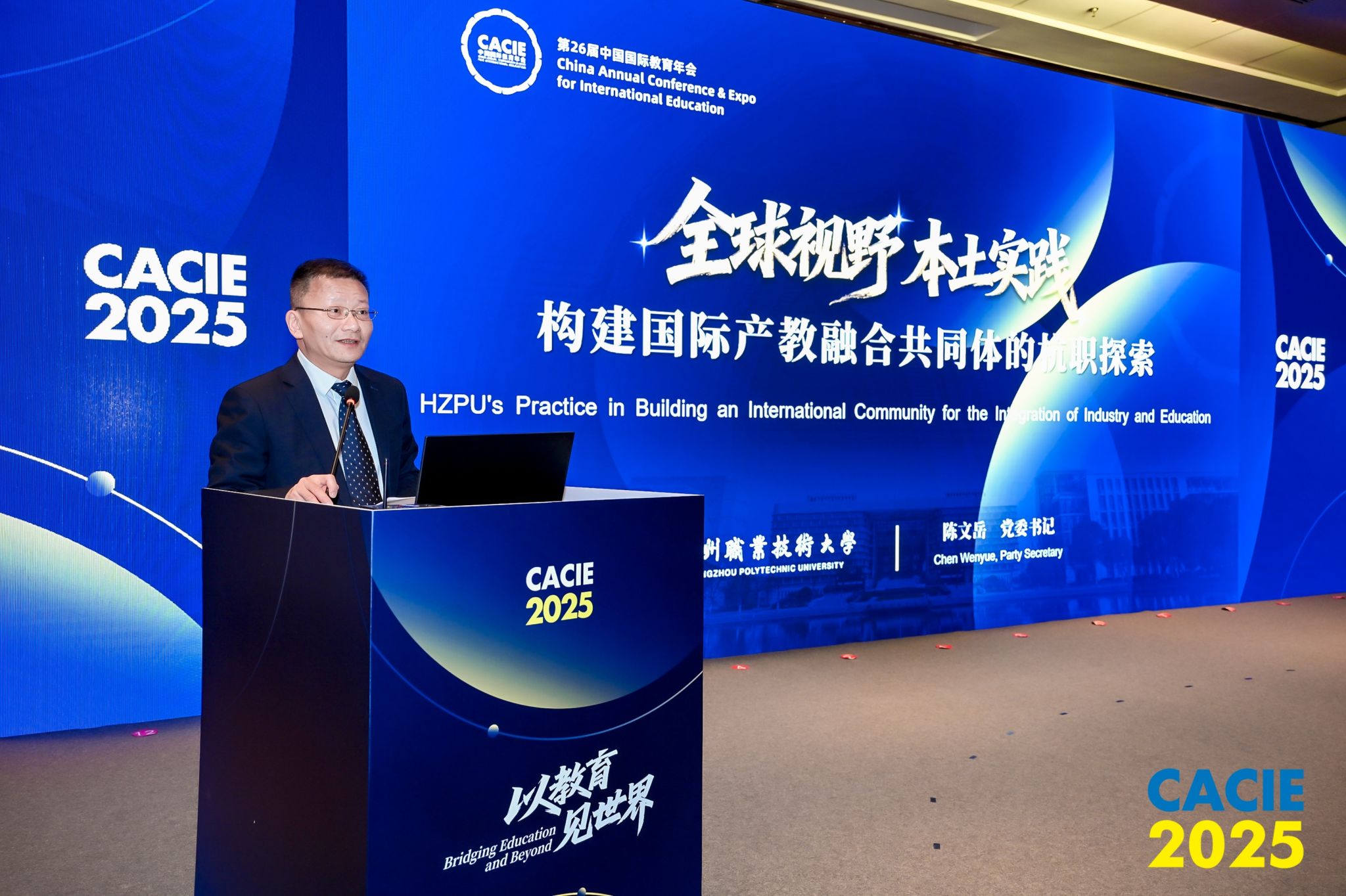作为本届年会的重要组成部分,“赋能职教·共塑未来:中国匠谷国际产教融合发展论坛”于10月30日下午在国家会议中心成功举办。联合国教科文组织专家、中国政府友谊奖获得者安德烈·切韦廖夫,教育部职业教育发展中心副主任黄辉,中国教育国际交流协会副秘书长王鲁新,教育部职业教育与成人教育司综合改革处一级调研员李红东等领导和嘉宾出席论坛。我校党委书记陈文岳应邀出席论坛,并与英国索尔福德大学、北京财贸职业学院、俄罗斯圣彼得堡国立农业大学等中外院校代表同台交流,围绕全球职业教育产教融合趋势与机遇展开深入探讨。