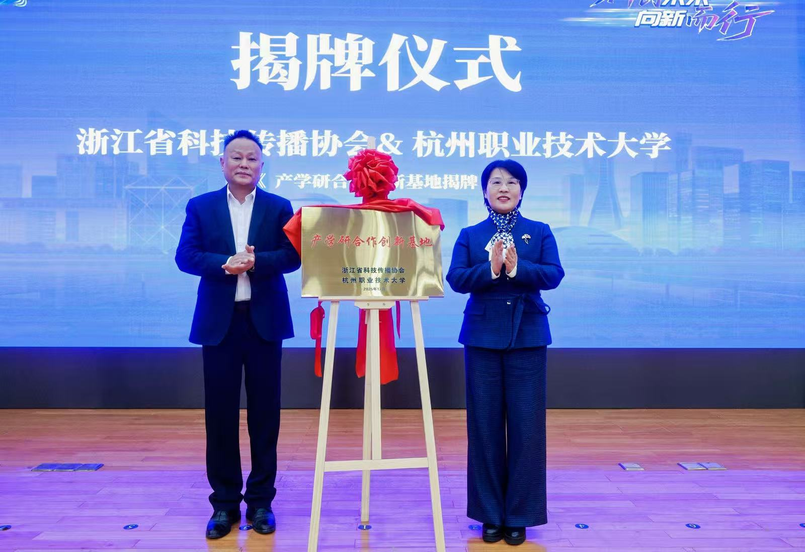 活动现场,浙江省科技传播协会与杭州职业技术大学共建的“产学研合作创新基地”正式揭牌,旨在深化“人才共育、项目共研、成果共享”合作机制,为科技成果转化提供持续支撑。