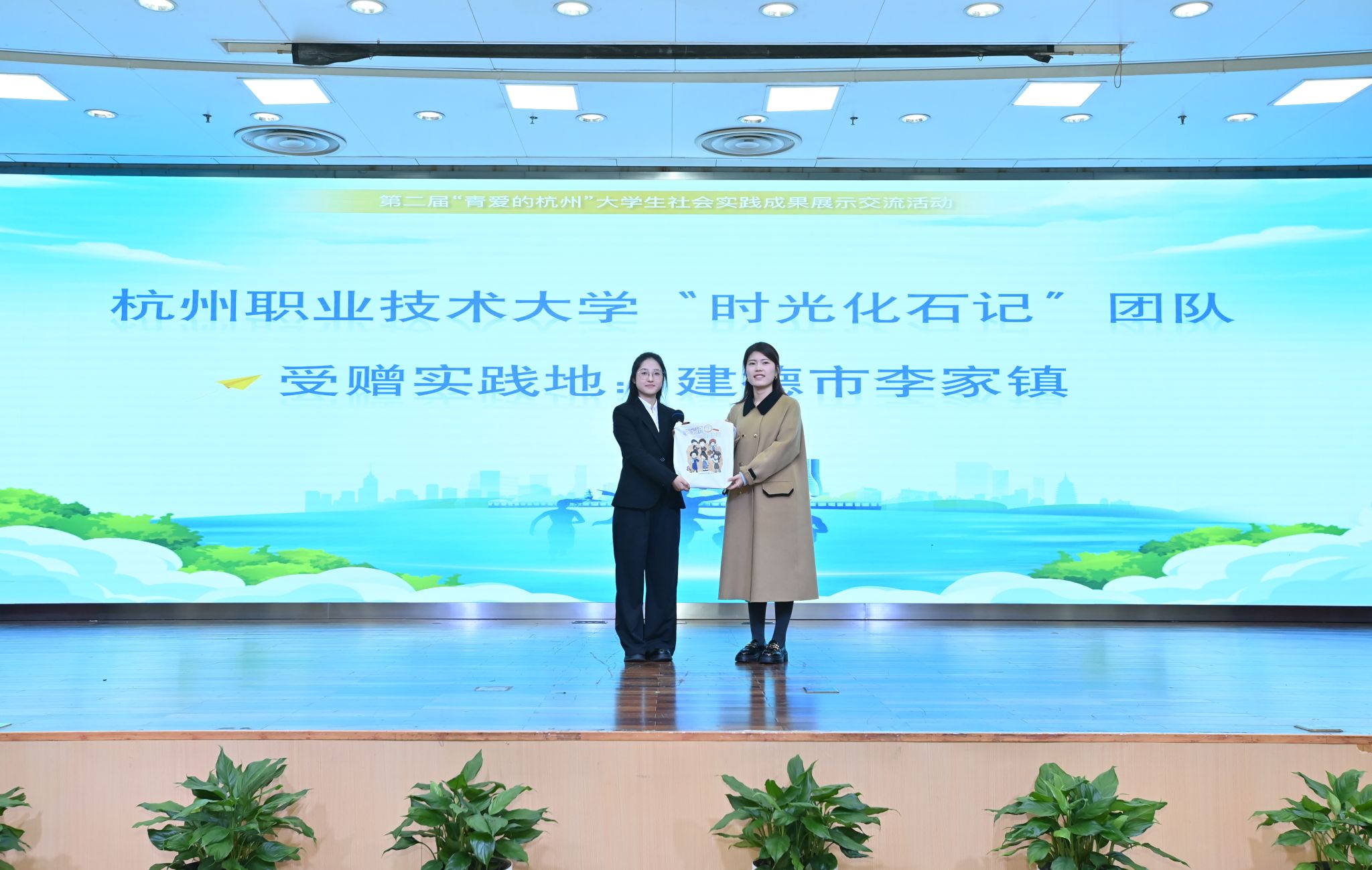 12月21日,“与时代共成长 与城市共攀登”第二届“青爱的杭州”大学生社会实践展示交流活动在杭州新闻大厦顺利举办。杭州市委宣传部、杭州市教育局、共青团杭州市委、杭州日报报业集团领导出席并颁奖,杭州职业技术大学党委书记陈文岳颁奖并寄语,党委副书记赖明诚出席并颁奖。