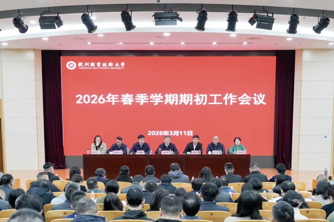 春山可望启新程,奋进当时正扬帆。为全面总结2025年学校发展成绩,学习贯彻浙江省、杭州市“新春第一会”精神,全面部署2026年新学期重点工作,明确“十五五”开局之年发展方向与攻坚任务,3月11日上午,杭州职业技术大学2026年新学期工作部署会在行政楼二楼报告厅隆重召开。校领导班子成员、全体科级以上干部、高层次人才、各专业负责人齐聚一堂,共商学校事业发展大计,共谋职业本科大学建设新篇。