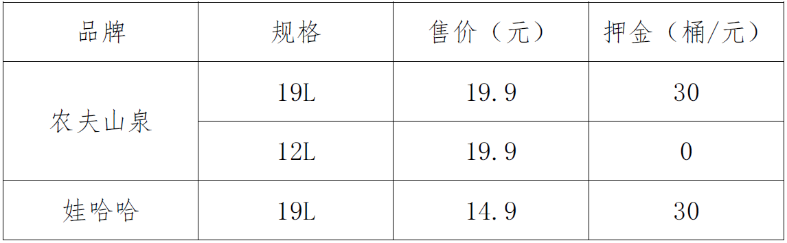 为了更好地服务学校师生,为全校师生提供优质的饮用水及配送服务,现由资产经营管理有限公司联营专业团队(杭州煜阳食品有限公司)负责校园内桶装饮用水配送服务工作。