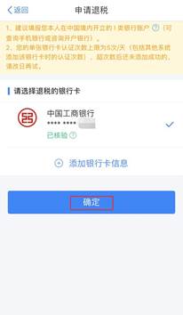 (4)申请退税:点击“申请退税”后,选择绑定的银行卡后提交退税申请可以查看退税申请进度(不申请退税也可以点击“放弃退税”)