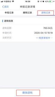 首页点击“我要查询”-“申报查询”,在“已完成”中可以看到申报情况,如有误,可以在“退税记录”界面点击“撤销退税”进行更正。